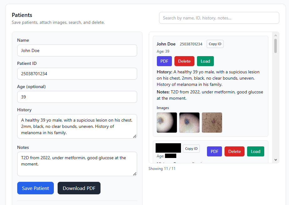 Built on a growing set of real clinical cases, curated by medical professionals, allowing the system to move beyond generic outputs and align more closely with real dermatology practice.